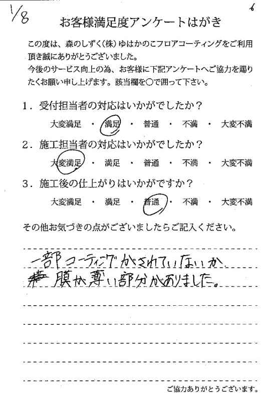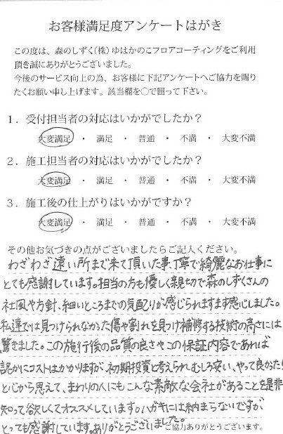 知り合いで今後フロアコーティングを検討する人がいたら森のしずくさんをお勧めします!