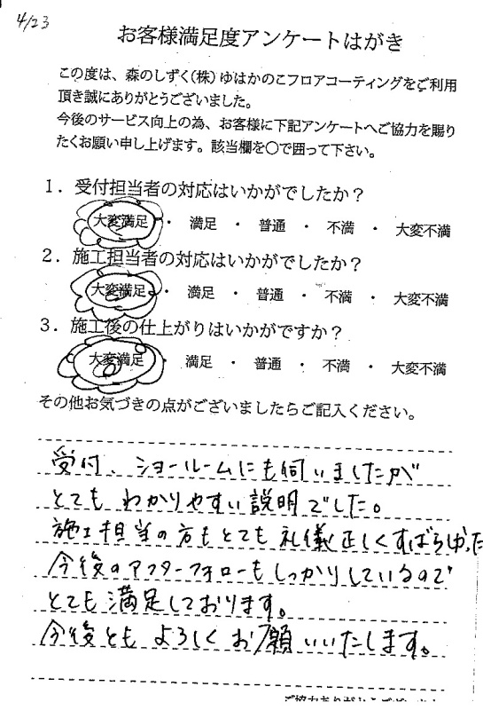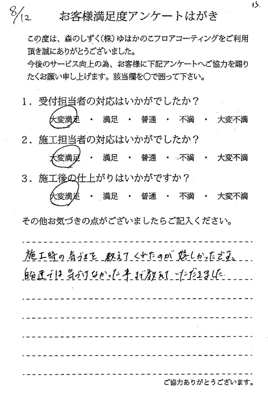 施工の説明も丁寧で分かりやすく、施工後のギスの説明も丁寧でした。